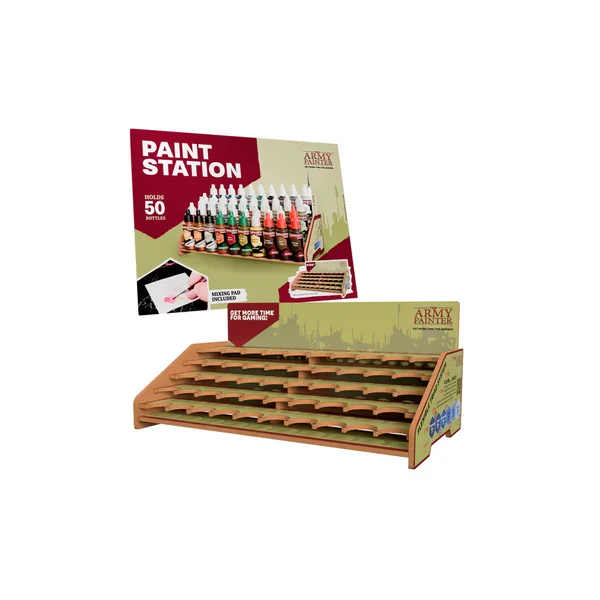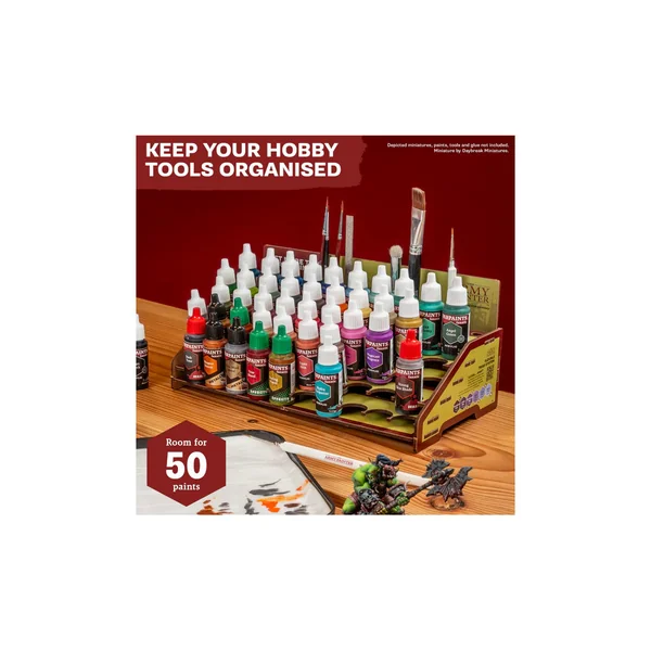 En plus des 50 pots qui ne traineront plus sur votre table, le Army Painter – Outils – Paint Station contient 16 emplacements pour les outils ou les pinceaux.