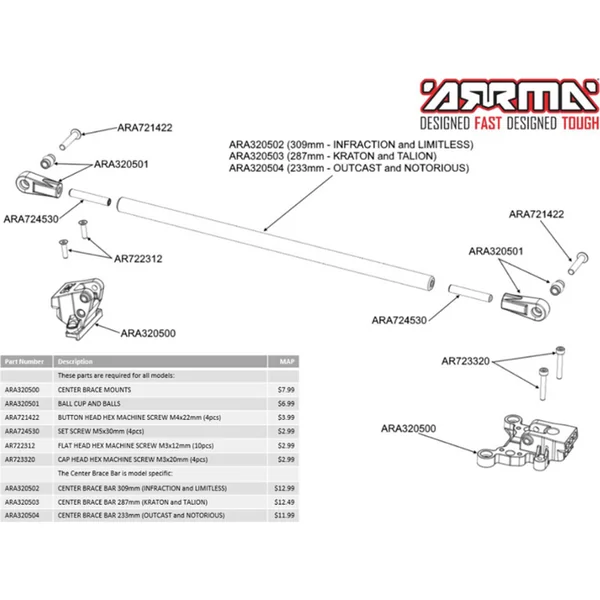Arrma pivots à rotule avec embouts