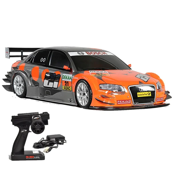Version RTR Prête à l’EmploiL’Audi RS5 Ultra est livrée en version Ready-to-Run, c’est-à-dire avec un système de radiocommande 2.4GHz déjà monté et préréglé. Cela vous permet de commencer à piloter immédiatement, sans avoir à vous soucier des réglages techniques complexes. Vous trouverez également un servo de direction 26kg, assurant un contrôle précis et fiable. Un Châssis Robuste et PerformantLe châssis de l’Audi RS5 Ultra Challenge Line est conçu pour offrir une robustesse et une efficacité maximales. Il est capable de résister aux impacts et aux conditions difficiles des courses, garantissant une longue durée de vie et une performance constante. Moteur Brushless 1100KV 3800WEquipée d’un moteur Brushless 1100KV 3800W, la Audi RS5 Ultra offre une puissance impressionnante et des performances de pointe. Ce moteur permet des accélérations rapides et une conduite fluide, idéale pour les débutants comme pour les pilotes expérimentés. Évolutivité et Options de PersonnalisationL’une des grandes forces de l’Audi RS5 Ultra est sa capacité à évoluer. Grâce aux nombreuses options disponibles, vous pouvez améliorer et personnaliser votre véhicule pour qu’il réponde parfaitement à vos besoins et préférences de pilotage. Cette version est prête à l’emploi ! Radiocommande 2.4ghz fournie et servo installé !Dimensions de cette Challenge Line Audi RS5 Ultra FG Modellsport