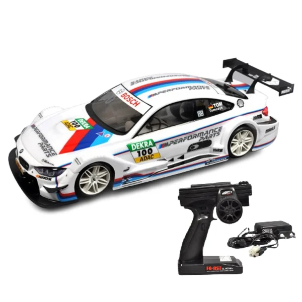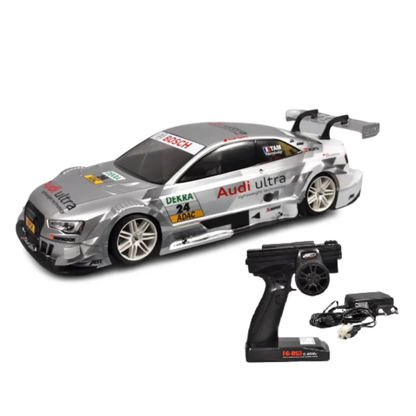L’Audi RS5 Ultra est livrée en version Ready-to-Run, c’est-à-dire avec un système de radiocommande 2.4GHz déjà monté et préréglé. Cela vous permet de commencer à piloter immédiatement, sans avoir à vous soucier des réglages techniques complexes. Vous trouverez également un servo de direction 26kg, assurant un contrôle précis et fiable.