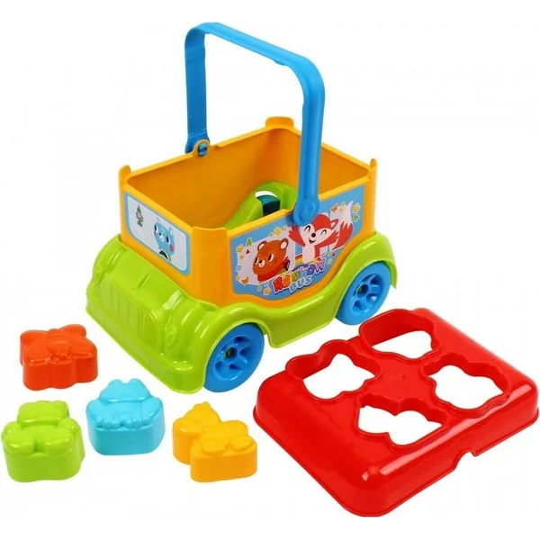 Les figurines originales et colorées aideront l’enfant à étudier le monde des animaux et à distinguer les couleurs. Les ouvertures dans le couvercle du toit de l’autobus correspondent aux formes des figurines, ce qui rend le jeu non seulement intéressant, mais aussi utile pour le développement de la motricité fine et de la précision des mouvements. Le jouet peut être utilisé non seulement pour trier les figurines, mais aussi pour jouer au transport de petits jouets, comme un organisateur.