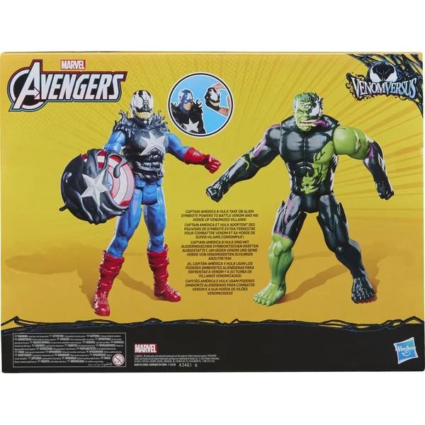 Quand ces super-héros Marvel font équipe, les méchants n’ont aucune chance ! Les enfants peuvent imaginer les aventures du symbiote extraterrestre avec ces super figurines Marvel Avengers VenomVersus Titan Hero Series pour filles et garçons ! Ce pack inclut des figurines Captain America et Hulk de 30 cm avec une déco et un design inspirés de Venom, ainsi qu’une articulation de base pour le jeu et l’exposition. La figurine Venomized Captain America est également vendue avec un bouclier corrompu et un masque Venom amovible pour compléter la transformation en symbiote extraterrestre ! Il existe d’autres jouets Avengers, dont des figurines, des coffrets, des véhicules et des articles de déguisement pour créer une collection inspirée du symbiote ou pour faire un cadeau aux enfants. La collection inclut plusieurs personnages, dont Spider-Man, Venom, Captain America et Hulk. (Vendus séparément, dans la limite des stocks.).