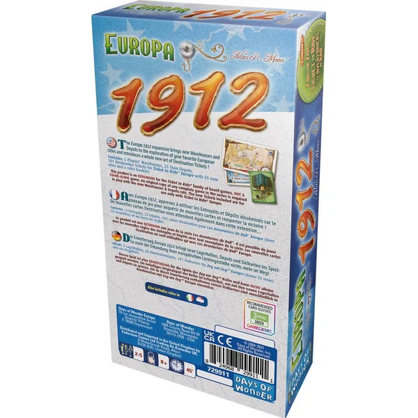 Ajoutez des destinations, des entrepôts et des dépôts à vos parties d’Aventuriers du Rail ! L’extension 1912 contient aussi des variantes inédites !