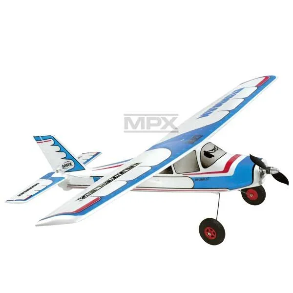 Ce modèle à aile haute, avec ses grandes roues, peut décoller pratiquement n’importe où. Rapide en vol et un pilotage en toute confiance, grâce à ses caractéristiques de vol saines. Equipé d’origine avec une gouverne de direction, une gouverne de profondeur et un moteur, vous avez la possibilité de le passer en trois axes, avec le Set Upgrade Ailerons (# 65164), et là, c’est le pied!