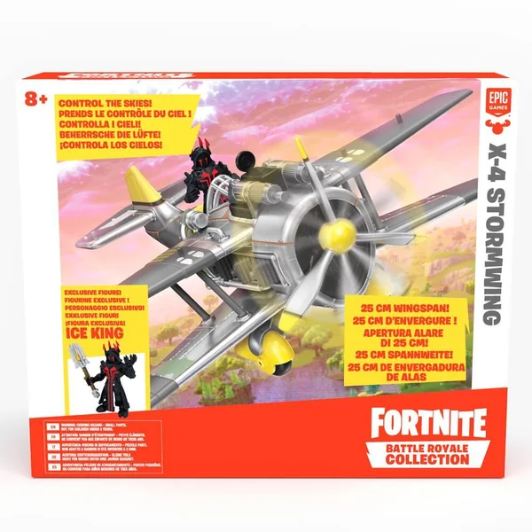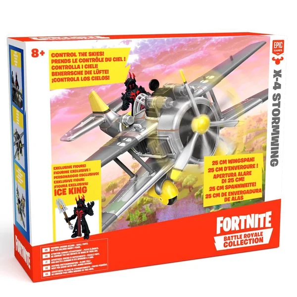 Grâce à l’Avion X-4 Stormwing Fortnite, déplace-toi rapidement et combats grâce à ses tourelles automatiques. Il mesure plus de 23cm. 1 figurine exclusive « Ice King ».