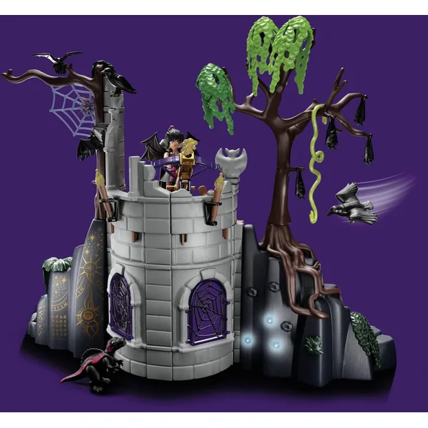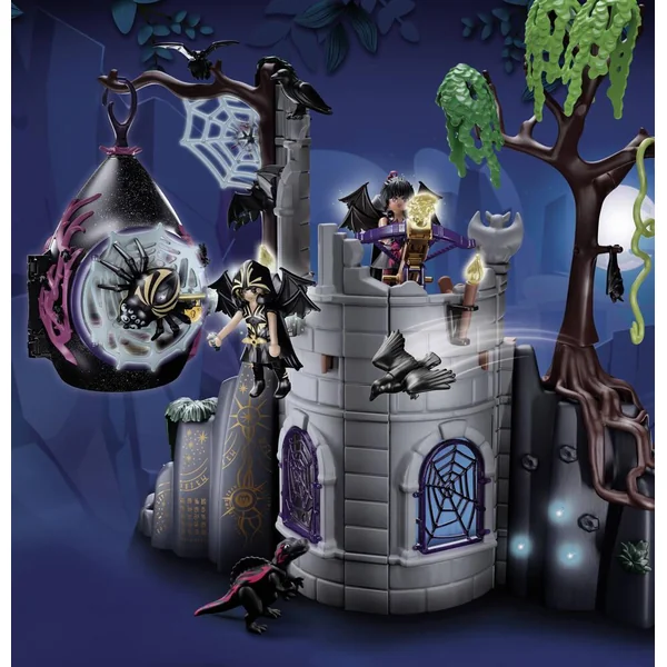 Il va y avoir de la magie dans l’univers Playmobil ! La ruine s’éclaire et les cristaux laissent passer la lumière (nécessite 1 pile 1,5V AAA non fournie). Contient deux personnages et leurs animaux spirituels ainsi que de nombreux accessoires. Dimensions : 40 x 14 x 32,5 cm (LxPxH). 135 pièces.