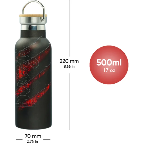 • Bouteille stylée avec couvercle en métal et d’une capacité de 500 ml, elle a non seulement un excellent look, mais est aussi très pratique. Elle garde les boissons chaudes jusqu’à 12 heures, tandis que les boissons froides restent rafraîchissantes jusqu’à 24 heures.