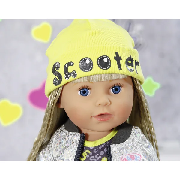 Une telle sortie en ville n’est pas à prendre à la légère. Il faut toujours choisir des vêtements appropriés et surtout stylés. Et c’est exactement ce que cette tenue offre. Grâce à la robe à couches, BABY born a l’air très élégante dans les rues animées de la ville. Son grand frère l’emmène généralement en ville en scooter. Pour ne pas ruiner sa coiffure avec le casque, elle met d’abord un bonnet jaune. Comme protection contre le vent, ils portent une veste avec un motif argenté brillant. Les poignets et la fermeture éclair contrastants s’accordent parfaitement avec l’imprimé en lettres sur la robe. Les superbes chaussures jouent avec les couleurs et complètent l’ensemble.