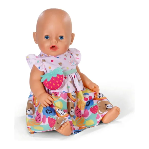 Avec cette superbe robe, Baby Born peut pleinement vivre son amour pour les ours en peluche et les tenues colorées !