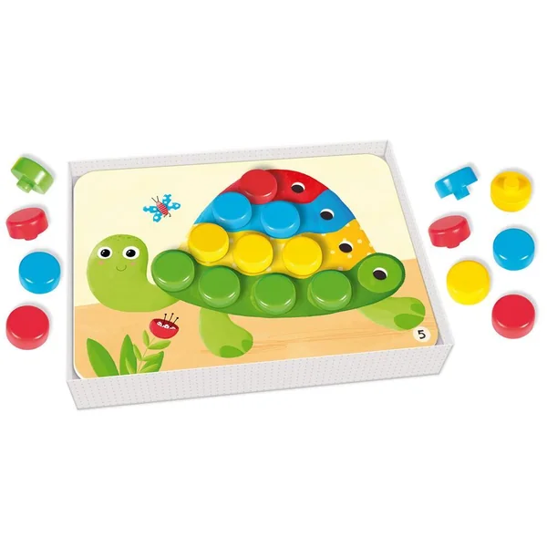L’enfant apprend les couleurs en emboîtant correctement les pions sur chaque fiche. Fiches de difficultés progressives. Pions de grandes taille adaptés aux tout-petits. Illustrations et couleurs très gaies.