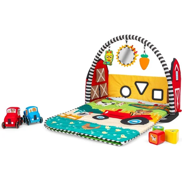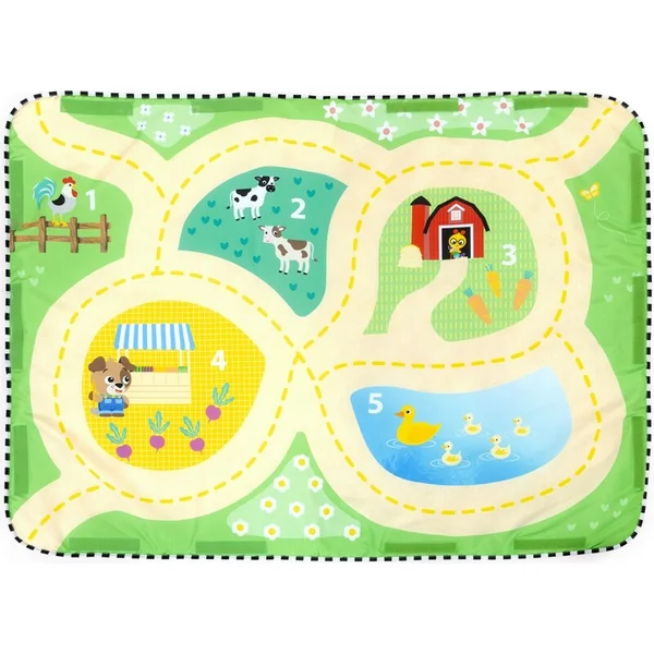- 4 modes de jeu : temps sur le ventre, tapis de jeu avec arche, ferme avec tri de formes amusant, chemin pour voitures