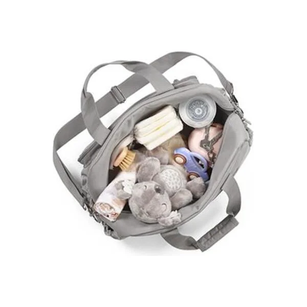 - Bandoulières pour le sac – Le sac est équipé de clips spéciaux qui permettent de l’accrocher à la poussette, ainsi qu’une bandoulière réglable. Le sac est confortable à porter et pratique pour un usage quotidien.