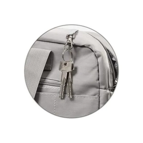 - À l’avant et à l’arrière, il y a une poche sécurisée à fermeture éclair pour les petits objets ou les tickets.