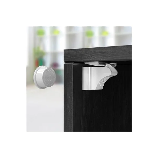 - Clé magnétique – une clé magnétique spéciale est nécessaire pour libérer le mécanisme. Elle peut également être installée hors de portée de l’enfant à l’aide du couvercle fourni.