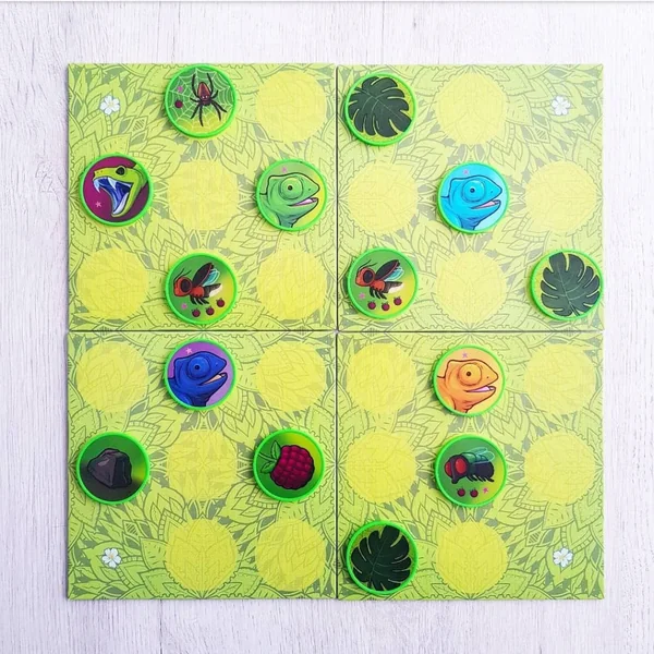 Dans Back To The Jungle, votre mémoire, votre stratégie et vos capacités d’attention seront d’une grande importance. Il bénéficie d’une grande rejouabilité en incluant – en plus des tuiles de base – des objectifs cachés, des tuiles spéciales et des événements qui font du jeu un grand défi.