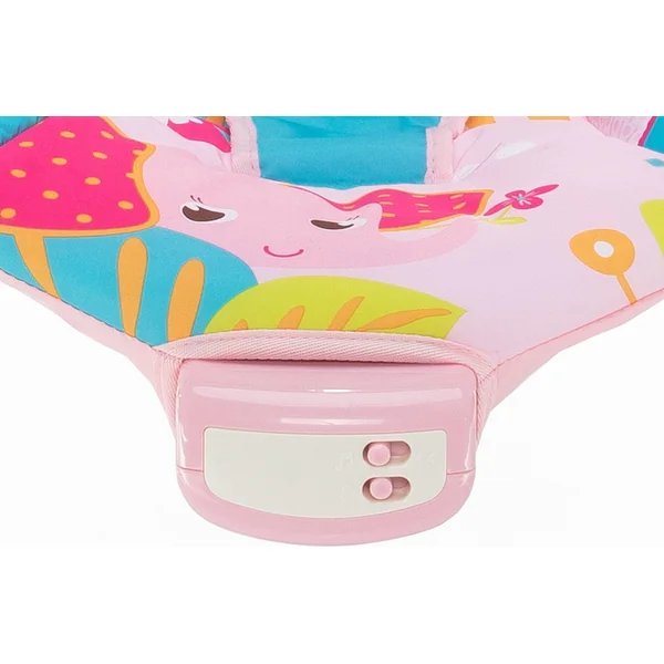 Le transat Happy dispose d’un mécanisme de jeu avec 5 mélodies et 2 niveaux de volume. Pour apaiser votre bébé, il est également équipé d’un mode de vibrations agréables. Les vibrations du transat et les mélodies peuvent être choisies indépendamment l’une de l’autre.