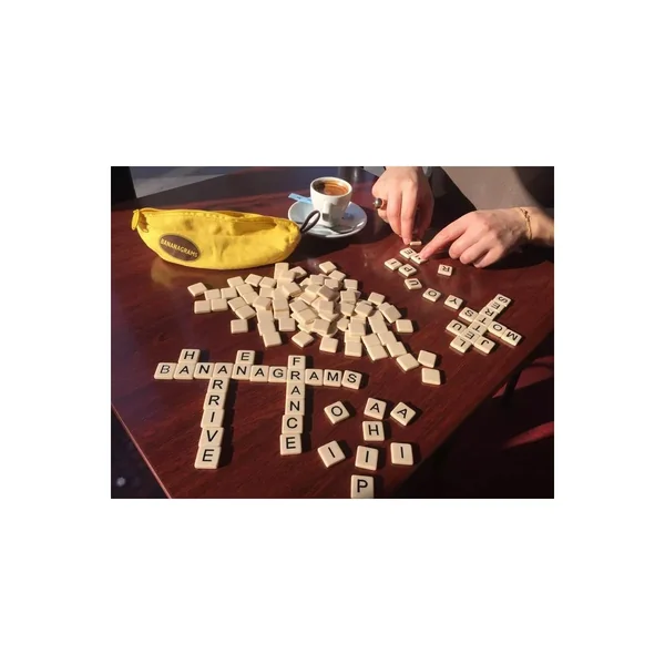 Bienvenue dans le monde de Bananagrams, le jeu qui donne la banane 🙂 Le jeu de lettres et de mots croisés rapide où tout le monde joue en même temps ! A emporter partout ! Soyez le premier à combiner toutes tes lettres pour former une grille de mots