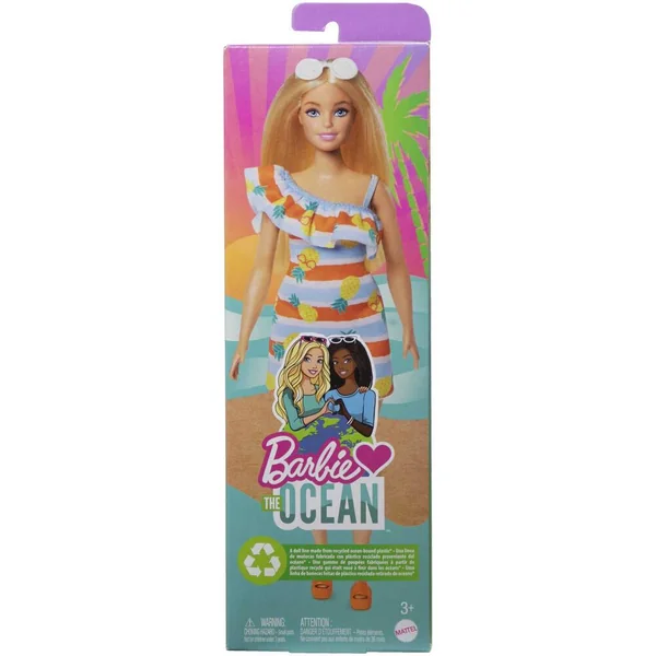 La poupée Barbie est fabriquée en plastique recyclé – La collection Barbie Aime l’Océan propose un ensemble de looks estivaux inédits. Les nouvelles poupées de cette gamme habillées de robes bain de soleil d’inspiration tropicale vous invitent en vacances au bord de la mer. Elles portent des tissus et des accessoires fabriqués à partir de matériaux recyclés ! Les poupées ne tiennent pas debout toutes seules. Les couleurs et les décorations peuvent varier. Parties en plastique fabriquées à 90 % à base de plastique prélevé à moins de 50 km des voies navigables dans des régions ne disposant pas de systèmes efficaces de collecte des déchets. À l’exception de la tête.