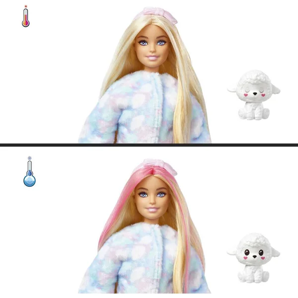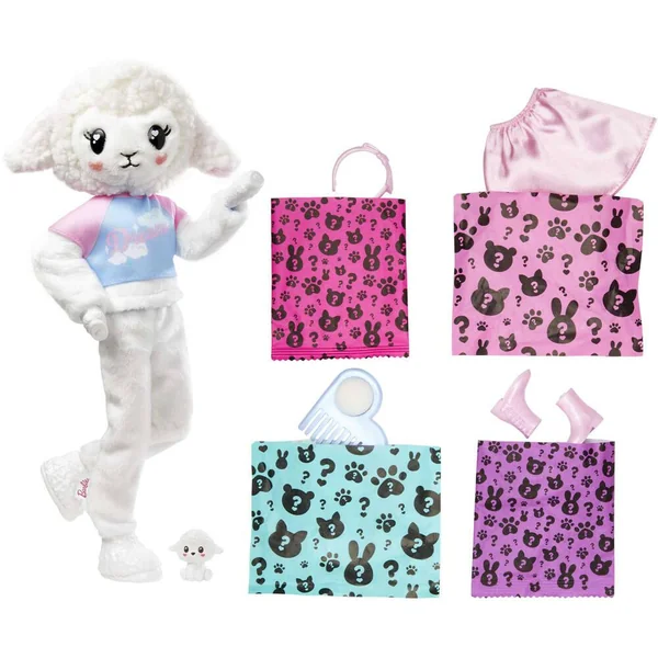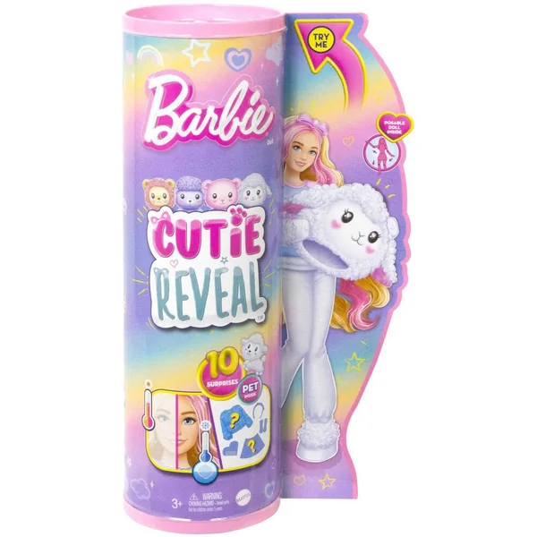 10 surprises sont à découvrir dans le coffret ! 1 Barbie, 2 changements de couleur, 1 déguisement d’agneau avec 1 t-shirt, 1 figurine et des accessoires.