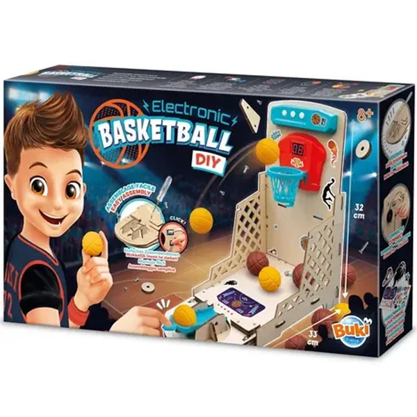 Un coffret pour monter son panier de basket électronique. Avec le tournevis inclus, l’enfant va assembler sans soudure et sans danger: le tableau des scores, le panneau de contrôle, le haut-parleur et le compartiment à piles. Personnalise le panier avec les autocollants.