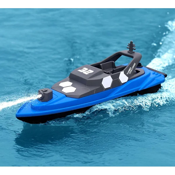 Bateau radiocommandé 2.4ghz à l’échelle 1:22, longueur 26 cm, doté d’une fonction propulseur de jet d’eau activable à distance via un bouton dédié sur la télécommande pour une navigation immersive. Vitesse de 8 km/h, Portée jusqu’à 25 mètres. Le bateau fonctionne avec 3 piles AA 1.5V (non incluses), la télécommande avec 2 piles AA 1.5V (non incluses). A partir de 6 ans.