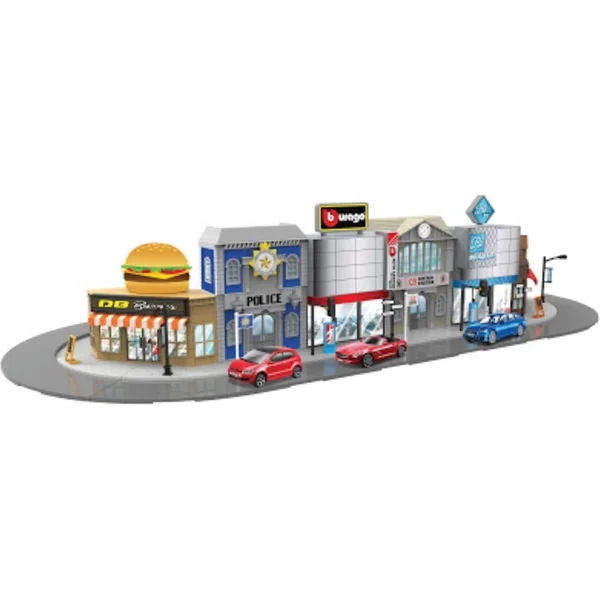 Découvrez la nouveauté de la marque Bburago – la série City ! Il s’agit de petits ensembles de jeu thématiques avec des voitures qui se combinent entre elles pour former une véritable petite ville. L’ensemble de jeu Bburago City Toy Shop comprend un adorable magasin avec un ours en peluche sur le toit et des portes fonctionnelles, ainsi qu’un modèle en métal réaliste de la Volkswagen New Beetle à l’échelle 1:43.