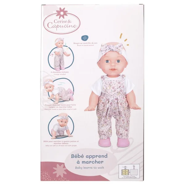 Bébé peut ramper à quatre pattes et marcher, réagissant aux sons. Frappez dans vos mains pour voir la poupée se déplacer, ajoutant une dimension amusante et engageante au jeu. Trois chansons entraînantes accompagnent les mouvements de bébé, rendant chaque moment de jeu joyeux et captivant.