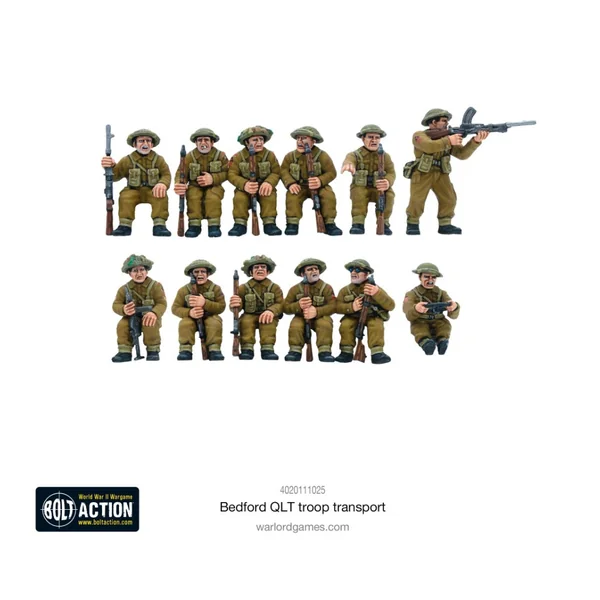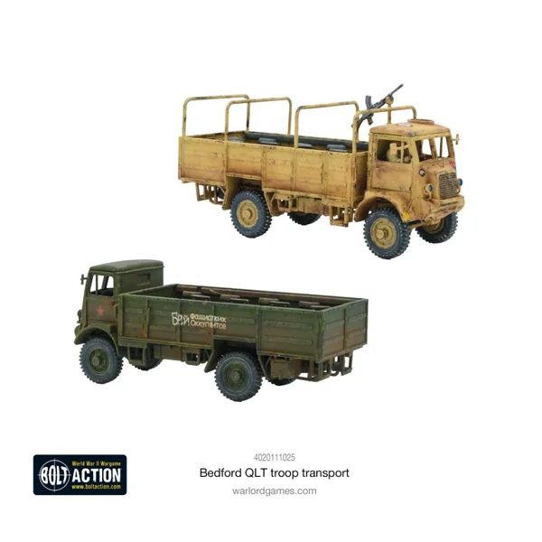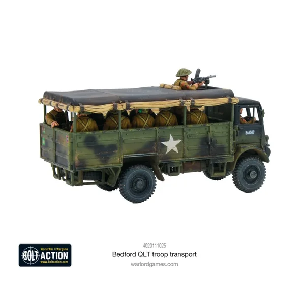 Cette boîte contient un transport de troupes Bedford QLT en plastique, ainsi qu’une grappe de passagers d’infanterie britannique assis à l’arrière. Avec des détails fantastiques et précis, et la possibilité d’assembler la soute recouverte de toile dans de multiples configurations, c’est un ajout indispensable pour tous ceux qui alignent une force britannique dans Bolt Action et qui veulent un peu plus de mobilité sur le plateau de jeu !