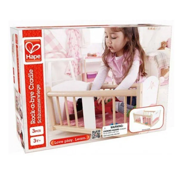 Notre berceau à bascule rose et en bois est parfait pour la maison de poupée de vos enfants.