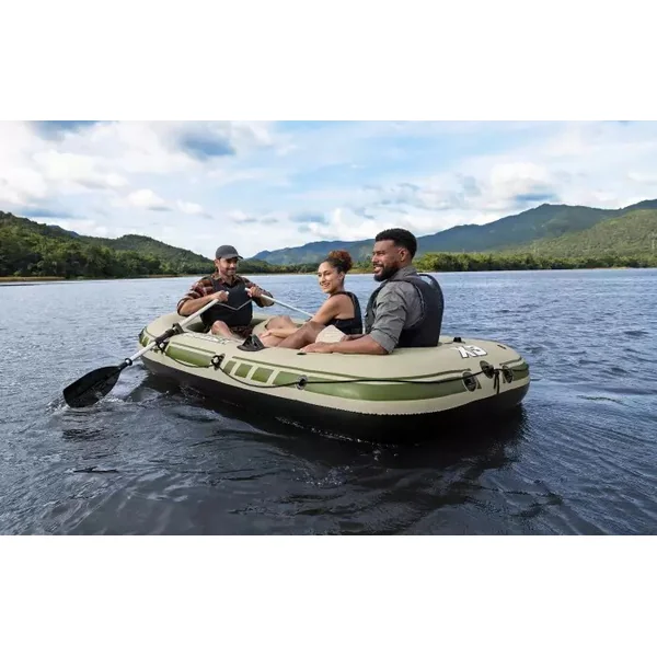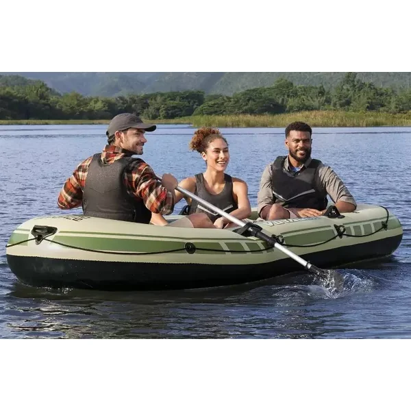 Partez pour une aventure en bateau avec le canot gonflable Bestway VOYAGER X3 RAFT SET, parfait pour les sorties en famille ou les expéditions de pêche.