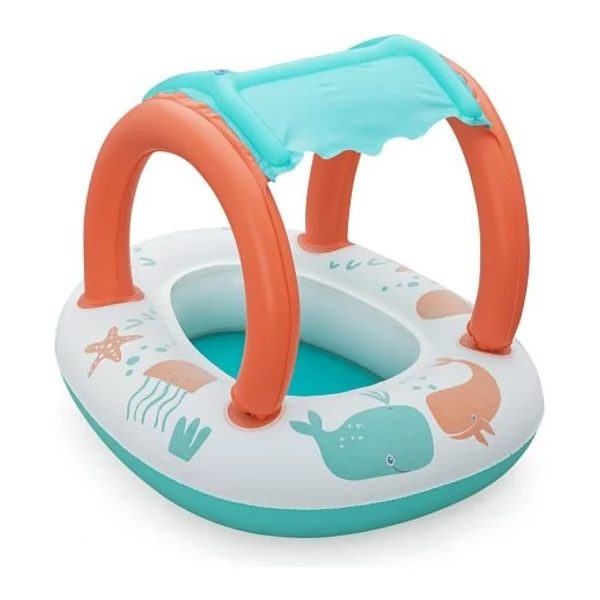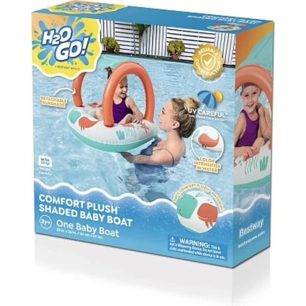 Le bateau gonflable pour enfants avec auvent Bestway Comfort Plush est idéal pour les petits enfants pesant entre 11 et 15 kg. Ce bateau est équipé d’un pare-soleil bloquant les rayons UV, protégeant ainsi la peau délicate des enfants, et il est facilement amovible grâce à un système de fixation à velcro. Les enfants peuvent y entrer et en sortir facilement. Le matériau doux et lisse Comfort Plush offre un confort aux enfants. La couleur du matériau devient plus vive et intense dans l’eau.