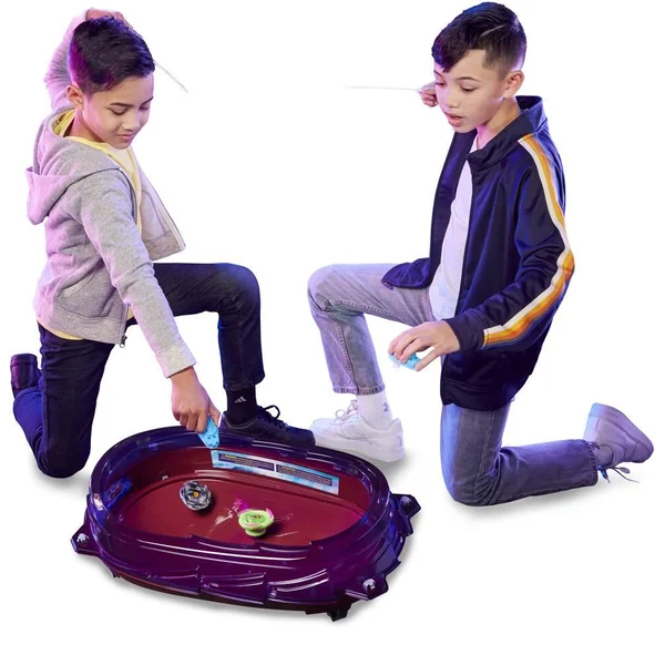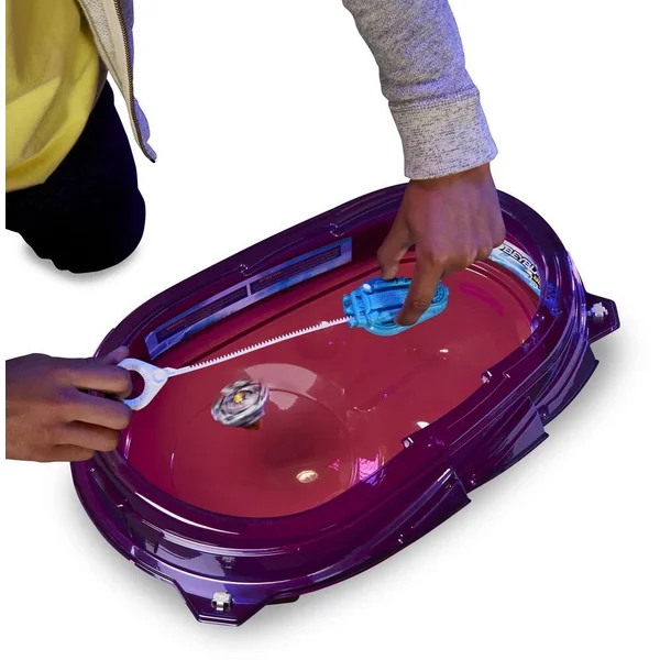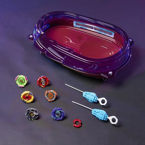 Lance ta toupie à toute vitesse dans l’arène et que le meilleur gagne ! 1 arène, 6 toupies, 2 lanceurs et 1 disque forgé inclus.