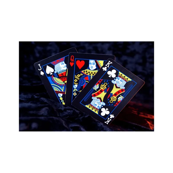 Chaque carte est méticuleusement conçue avec des couleurs inversées, remplaçant le blanc habituel par un noir profond et captivant. Cette inversion subtile crée un contraste saisissant qui attire l’œil et ajoute une touche de mystère à votre nouveau jeu de carte.