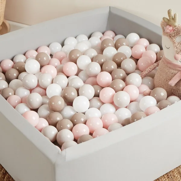 Découvrez la magie des balles colorées. Ensemble de 100 balles dans des tons de rose, blanc et gris chaud. Un divertissement idéal pour le jardin, le coin jeu ou pour le bain ou la piscine. Les balles peuvent être utilisées pour jouer à la maison comme à l’extérieur. Un accessoire parfait pour la joie des enfants et le développement de la motricité fine !