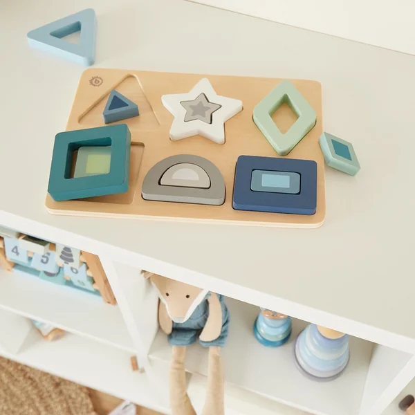 13 pièces colorées du puzzle en formes géométriques sont faciles à tenir et à insérer, les petites mains des enfants exercent ainsi leur motricité fine de manière ludique. L’objectif des enfants est de remettre toutes les parties du puzzle à leur place correcte, ce qui développe également la résolution de problèmes et la pensée logique. Le bois résistant garantit que ce jouet deviendra un compagnon durable pour chaque petit explorateur.