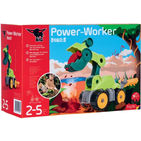 Les engins de chantier se transforment en dinosaures – Ce véhicule Power Worker Mini T-Rex dispose d’un godet dans la mâchoire, d’un râteau mobile à l’arrière et de roues souples et résistantes – Particulièrement adapté aux tout petits –