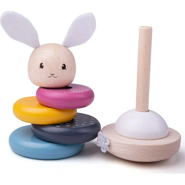 Des cercles colorés et magnifiques en bois 100 % FSC® raviront tous les enfants curieux. Le design mignon avec un petit lapin dans des couleurs pastel aidera au développement des compétences et à la reconnaissance des couleurs. Le lapin a des oreilles et une queue en feutre, ce qui permettra aux enfants d’apprendre sur les textures différentes, c’est donc aussi un jouet tactile.