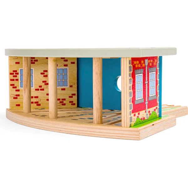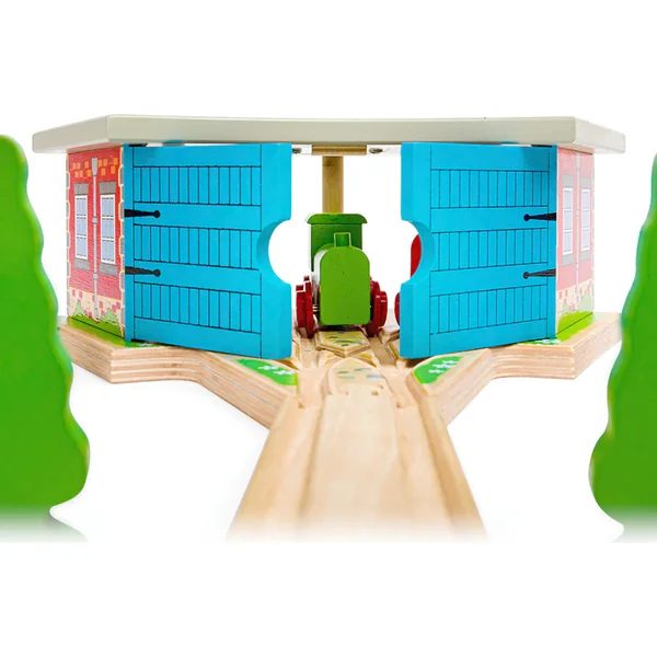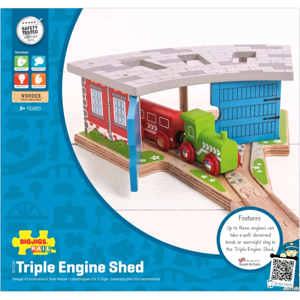 Le dépôt triple est un excellent moyen de garer vos trains à la fin de la journée. Les rails intelligents à l’avant permettent aux trains d’entrer dans trois directions différentes.