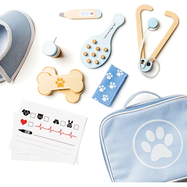 Ce kit vétérinaire pratique contient tout ce dont les jeunes vétérinaires ont besoin pour soigner les ours en peluche malades ou les animaux. Grâce au stéthoscope, les enfants peuvent écouter le cœur du patient, vérifier la température avec le thermomètre et même regarder dans les oreilles avec l’otoscope.