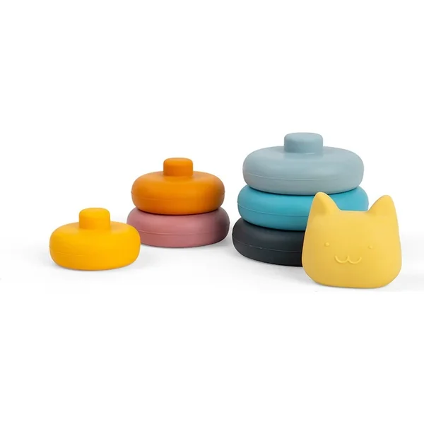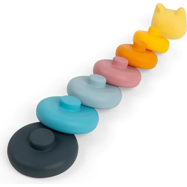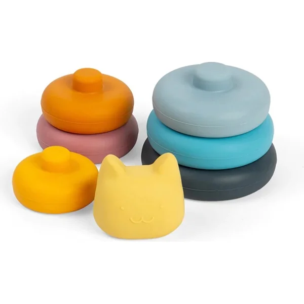 Parfait pour les amoureux des animaux ! La tour empilable en silicone en forme de chat se compose de six anneaux et d’une adorable tête de chat qui se dresse fièrement au sommet de la tour. Le silicone lisse est agréable pour les petites mains et excellent pour le développement sensoriel.