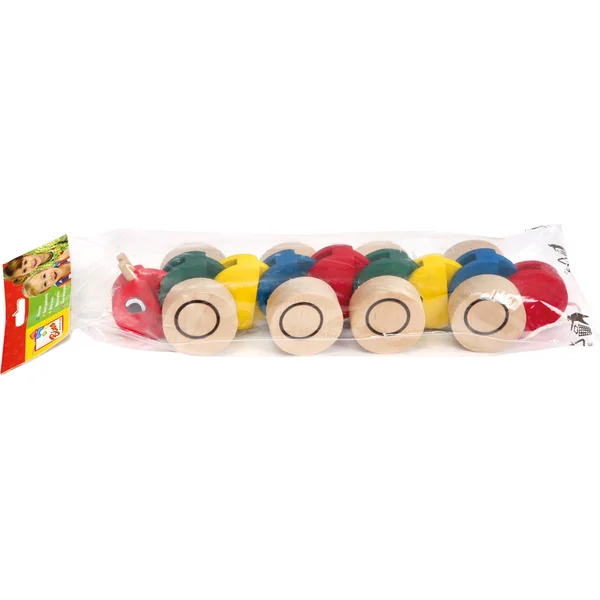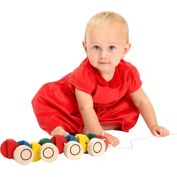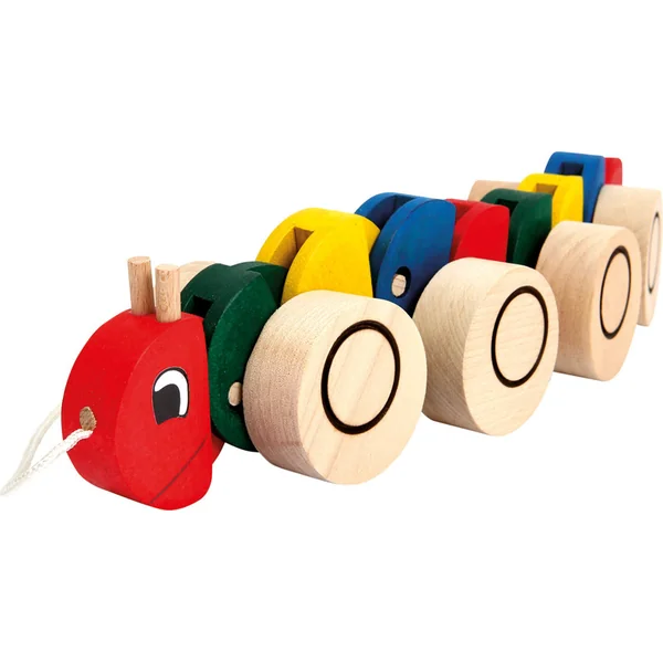 Chenille tractée. Cet animal à tirer coloré en bois de qualité imite les mouvements d’un crocodile, ce qui est amusant à regarder. Les premiers pas des enfants sont tout de suite plus joyeux quand ils peuvent tirer la chenille derrière eux.