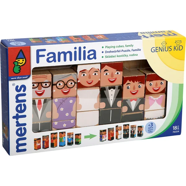 Tournez et pliez ! Un beau puzzle rotatif avec un motif familial en trois tailles. Maman et papa sont les plus grands et les enfants les plus petits. Grand-mère et grand-père sont entre eux. Il tourne facilement et offre de nombreuses combinaisons amusantes. Des blocs de qualité aident les enfants à découvrir et à comprendre leur signification.