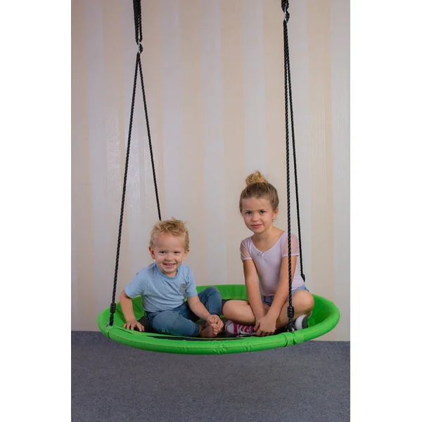 Hamac circulaire, vert – un jouet avec lequel les enfants peuvent s’amuser sans fin ! Le produit peut être utilisé à l’intérieur comme à l’extérieur.