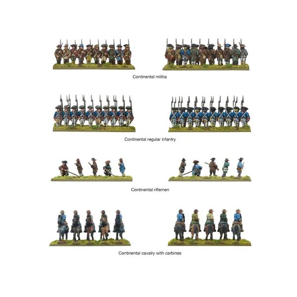 La boîte Continental Army Brigade contient suffisamment d’éléments pour assembler :