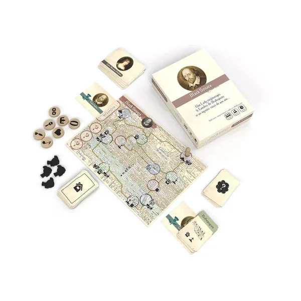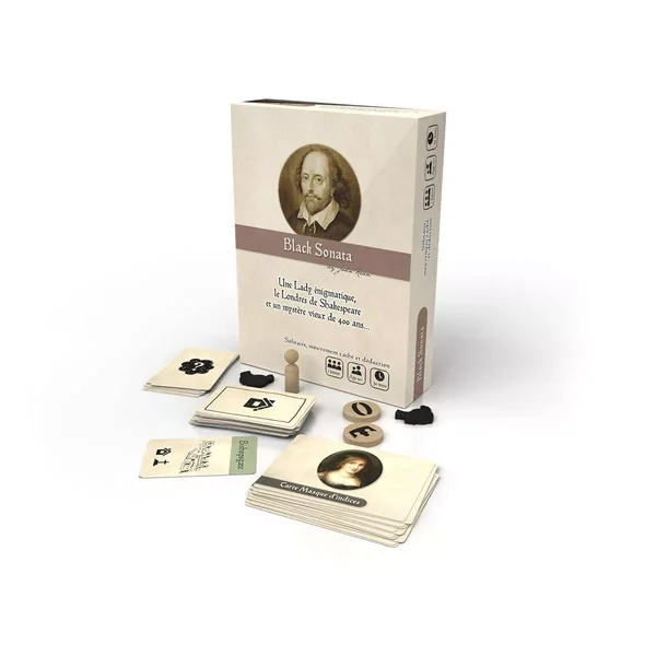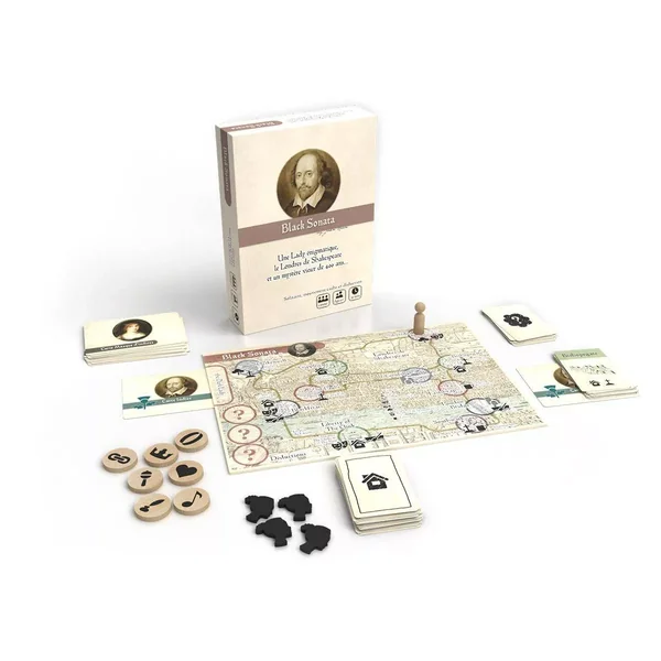 Black Sonata : Vous devez pister la Dark Lady pendant ses déplacements dans le Londres de Shakespeare, vers 1600. Si vous parvenez à l’approcher, vous obtiendrez peut-être un indice sur son identité avant qu’elle ne s’échappe une fois de plus. Vous devez récolter suffisamment d’indices pour déduire ses caractéristiques et la confronter avant qu’elle ne disparaisse définitivement. Si vous réussissez à la capturer et à l’identifier, vous remportez la partie. Plus vous retrouvez vite la Dark Lady, plus votre score final sera élevé. Lors de chaque partie la Dark Lady se déplace dans Londres selon des séquences bien précises établies lors de la mise en place du jeu. Au nombre de 20 et rangées par ordre de difficultés, celles-ci garantissent au joueur, des parties toujours différentes.