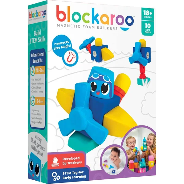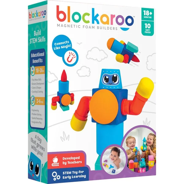 Blockaroo est le jeu de construction parfait pour mettre les sens de bébé en éveil et développer sa créativité. Les blocs doux aimantés contenus dans la boîte sont adaptés aux petites mains de votre enfant.
