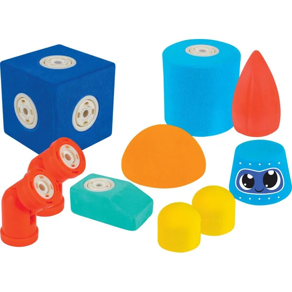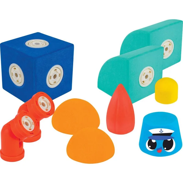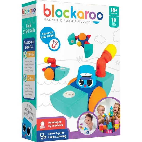 Blockaroo boîte de 10 pièces. 1 modèle parmi le robot (réf. 02082436) ou l’ avion (réf. 02082437) ou le bateau (réf. 02082438). Les blocs doux aimantés Blockaroo permettent aux petits de construire et de créer comme jamais auparavant ! Les grands blocs doux sont idéaux pour les tout-petits et les enfants d’âge préscolaire. Ils sont développés par des enseignants et testés en matière de sécurité pour même dépasser les normes internationales les plus strictes en matière de jouets. Une des nouveautés qui rend les Blockaroos vraiment spéciaux est son système de connexion aimanté. Les blocs ne se repoussent jamais, créant des possibilités de jeu infinies. Les blocs aimantés non toxiques tournent également à 360 degrés lorsqu’ils sont connectés et cliquent lorsqu’ils tournent, offrant encore plus de possibilités d’interactivité et de créativité ! Ils sont également un jouet phénoménal STEM, enseignant des compétences précoces en STEM importantes telles que le comptage, le tri et l’empilement pour les tout-petits tout en stimulant le développement tactile et sensoriel. Pour les enfants un peu plus âgés, ils favorisent la compréhension technique, la résolution de problèmes, la pensée spatiale et l’imagination. Contenu d’une boîte de 10 pièces : 10 soft pièces incluses dont un cube de 5.7 cm. Matière des blocs : mousse. Les blocs Blockaroo sont non toxiques, étanches et parfaits pour le bain. Ne pas utiliser en eau salée. Guide d’entretien et de nettoyage inclus. Dimensions d’une boîte de 10 pièces : 18 x 6.7 x 25 cm.