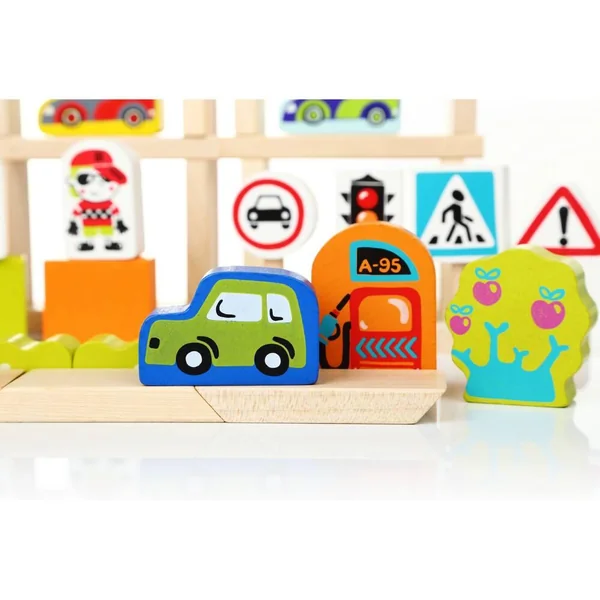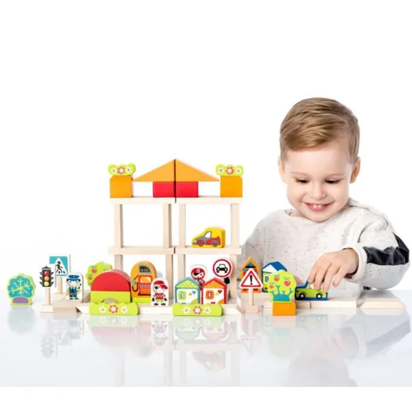 Baril contenant 55 blocs de construction. En bois peint. Blocs de différentes formes et dimensions pour des constructions de toutes sortes : cubes, pavés, pyramides, demi-lunes, cylindres… Baril rectangulaire en carton épais avec 2 anses cordons, dimensions 19 x 19 x 20.5 cm. Développe la motricité et l’imaginaire. Produit en bois certifié.