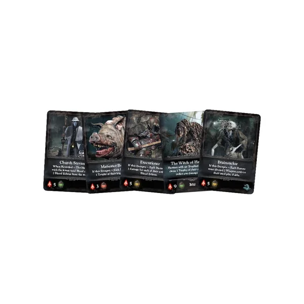 Bloodborne: The Card Game est un jeu basé sur l’univers du jeu vidéo du même nom. Entrez dans la ville gothique en ruine de Yahrman, dans lequel d’horribles créatures se trouvent. Les joueurs sont des chasseurs en concurrence pour tuer des monstres et récolter leur sang. Au fil de la partie, vous allez vous équiper de mieux en mieux, améliorer vos capacités de combats et vos compétences. À vous de mettre vos prises à l’abri avant de mourir ! Faites attentions aux autres chasseurs qui sont autant des partenaires que des ennemis !