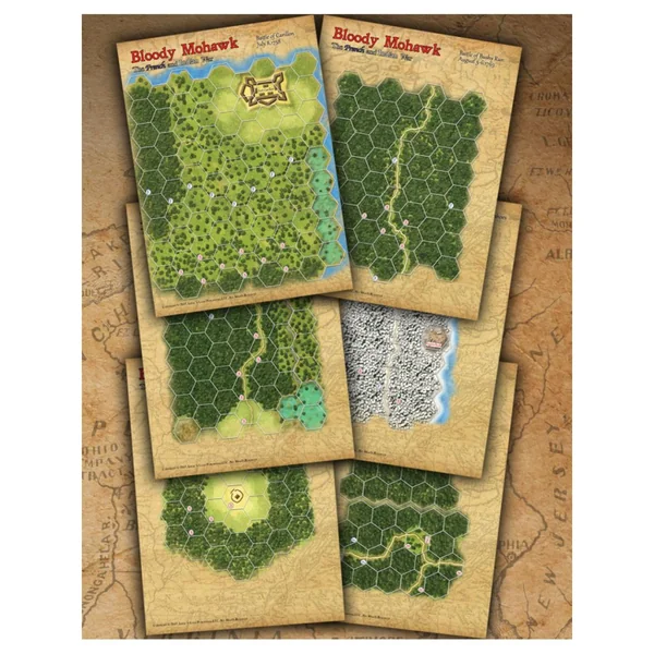 Bloody Mohawk, conçu par Bill Molyneaux, est une simulation de la guerre de la Conquête, également appelée guerre de Sept Ans. Les Anglais et les Français s’étaient affrontés pendant des années pour la possession de l’Amérique du Nord. Les deux camps souhaitaient contrôler deux rivières stratégiques, l’Allegheny et la Monongahela, qui représentaient des routes commerciales cruciales.